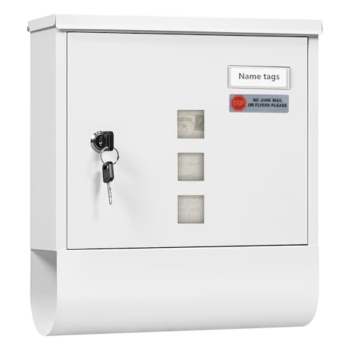 WOLTU Brevlåda, postlåda med tidningsfack, genomskinliga fönster, namnbricka, låsbar väggbrevlåda, med 2 nycklar, modern, vit, 30,5 x 10 x 33,5 cm, BK006ws