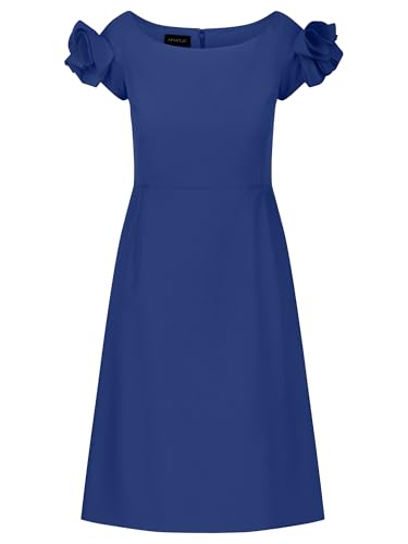 APART Damcocktailklänning, rund hals, knälång festklänning, halvtransparent Georgette brudtärneklänning, ärmlös, normal passform, lätt och bekväm bröllopsklänning, ljusblå, Kungsblå, 40