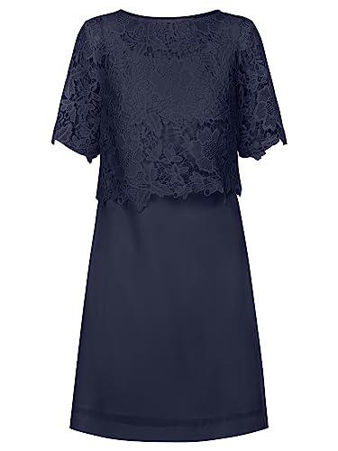 Bbonlinedress Cocktailklänning för kvinnor, bröllopsklänning, formell klänning, V-ringning, 3/4-ärmar, vintage, midiklänning, festklänning, Marinblått Xsp, M