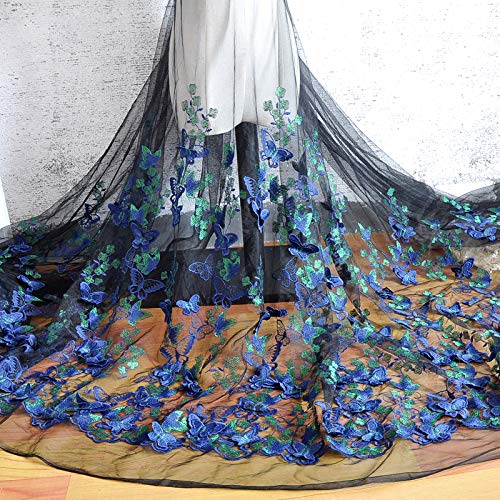 130 cm bredd 3D fjäril blommig blomma broderad tyll spets tyg nät spetstyg från gården för gör-det-själv handgjorda kläder bröllopsklänning heminredning (3 meter, svart blå)
