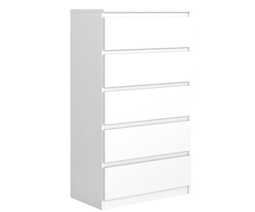 Elegant och rymlig byrå 5 lådor 70 cm, vit, 70 x 39 x 125 cm