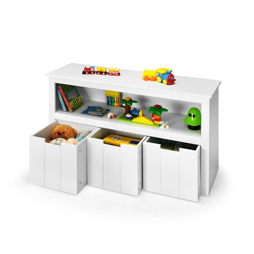 KOMFOTTEU Leksaksskåp med dolda lådhjul, barnhylla med 3 lådor, byrå, sidoskåp, trä, multifunktionellt skåp, förvaringsskåp för barnrum, kontor, vit