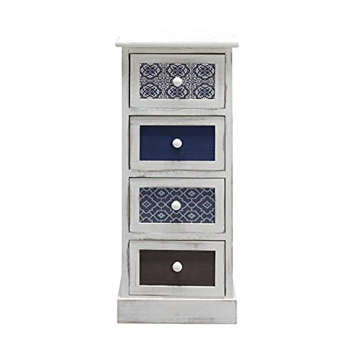 Rebecca Mobili Byrå Sängbord Vit Grå Blå Shabby Wood 4 Lådor Vardagsrum Platssparande Heminredning - 80 x 29 x 25 cm (H x B x D) - Art. RE6082