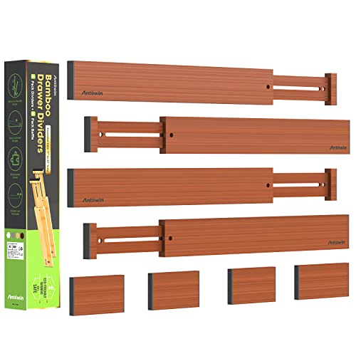 ANTOWIN 8-pack lådavdelare i bambu, organisatörer, justerbara lådavskiljare, expanderbar fjäderbelastad organiserare för redskap, byrå, kläder, sovrum, badrum (blå)