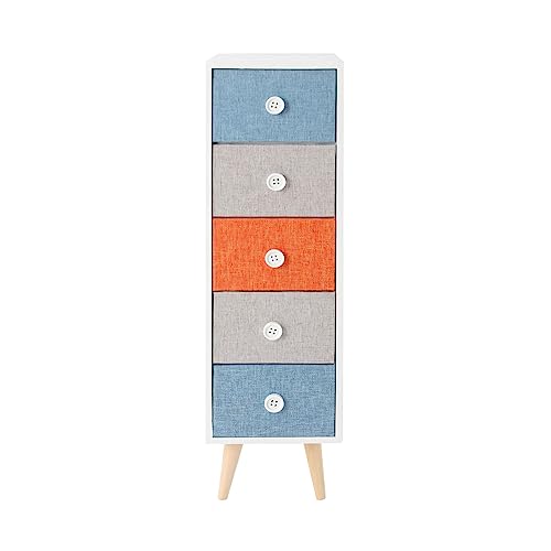 Rebecca Mobili Byrå med 5 lådor, monterad byrå, Vit Grå Blå Orange, Modernt, Mdf trätyg, för entrérum - Mått 88 x 25 x 25 cm (HxBxD) - Art. RE6670