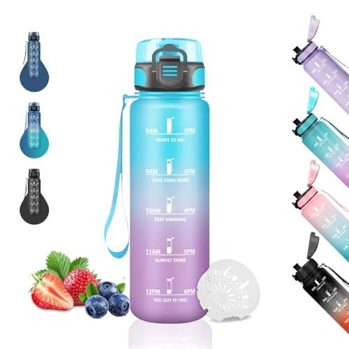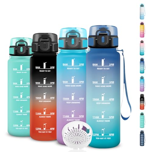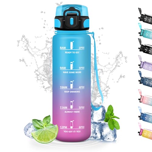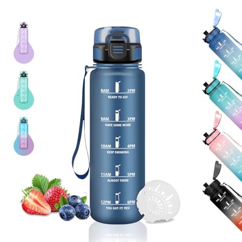 KollyKolla 1L motiverande vattenflaska med tider för att dricka, BPA-fri, läckagesäker sportflaska, 1 liter vattenflaska för vuxna, barn, gym, arbete, cykel, gym