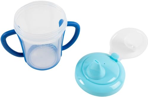 Nuby 360° läckagesäker mugg - ergonomiska handtag - designad för att dricka i alla lägen - 210 ml - blå och orange - från 4 månader - 2-pack