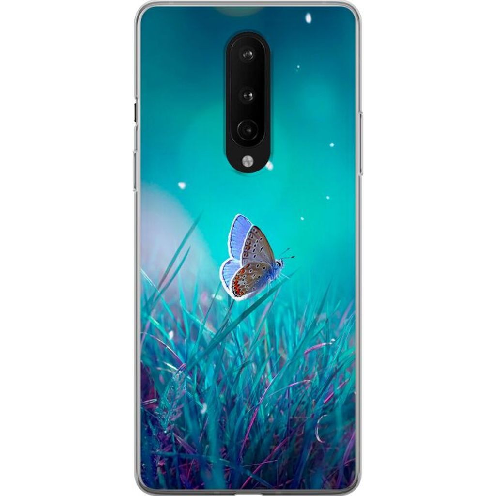 OnePlus 8 Transparent Mobilskal Blå fjäril