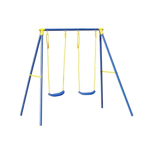 Barngunga med två sittplatser - Utomhusgunga med justerbara säten och halkfria fötter, perfekt för trädgård och terrass, blå, av rostsäker metall, 209 x 142 x 182 cm