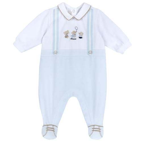 Chicco Bomullsparkdräkt med fötter för bebisar 0–24, vit och blå, 6 månader, Vit och blå, 6 månader