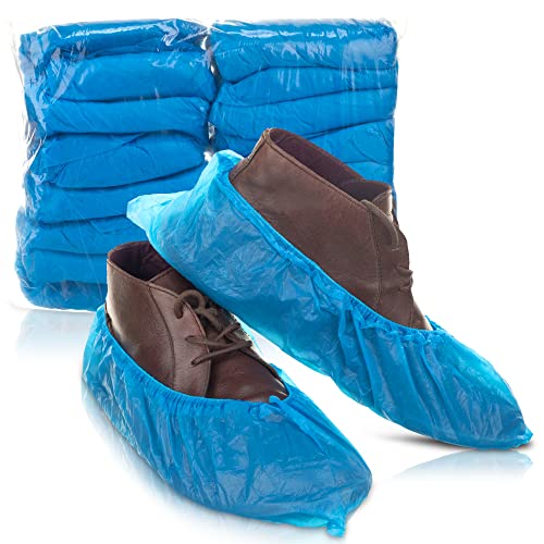 PimPam Factory engångstofflor - engångsleggings fötter - 100-pack - blå engångs skoöverdrag för vuxna av polyeten - vattentätt för omvårdnad, gästfrihet, fabriker