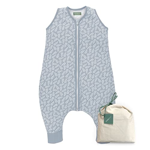 amo nenes 2.5 TOG babysovsäck vinter sovsäck med fötter babysovsäck litet barn ekologisk bomull sovsäckar extra mjuk pyjamas för pojkar och flickor, Blå grå, Medium