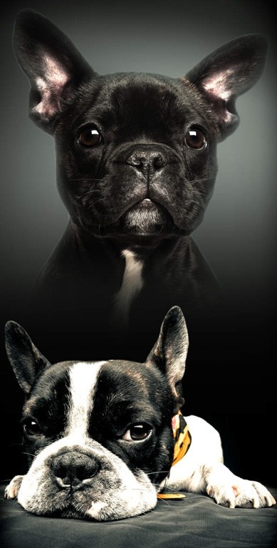 Hundhandduk - 70x140 cm - 100% bomull - Mjuk badhandduk med två små franska bulldoggar