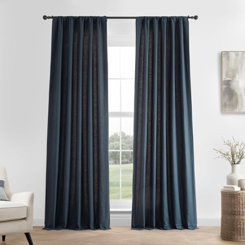 HPD Half Price Drapes, franska linnegardiner 213 cm långa mörkläggningsgardiner för sovrum och vardagsrum 127 x 213 (1 panel), native marin