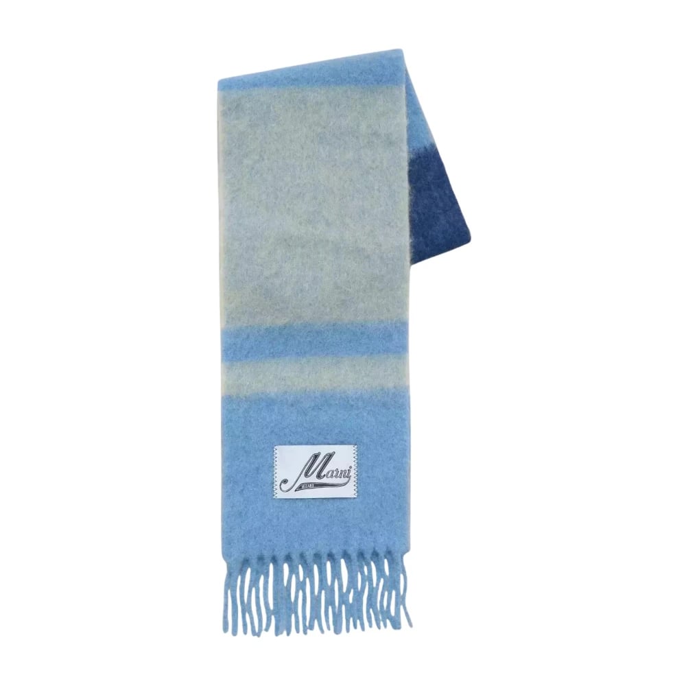 Marni, Accessoarer , Dam, ONE Size, Blå Randig Fransig Halsduk