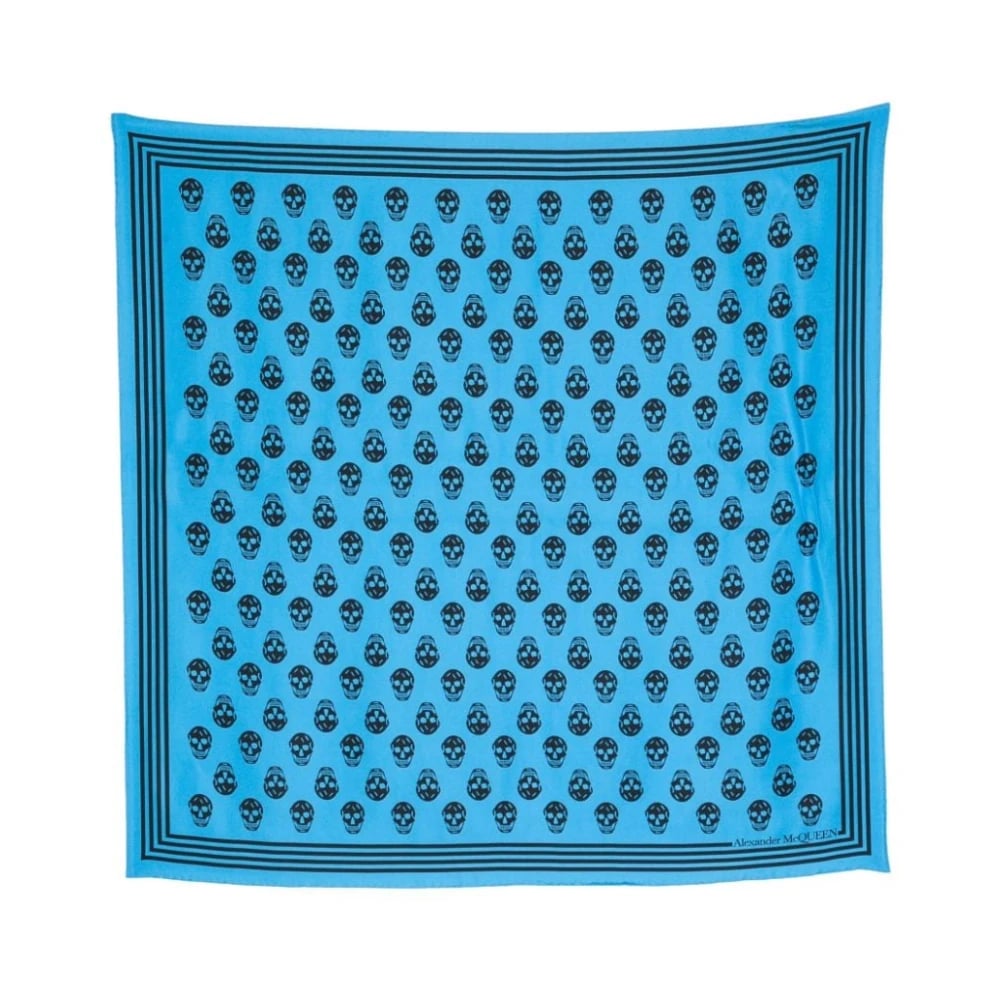 Alexander McQueen, Accessoarer , Dam, ONE Size, Blå Halsduk med Skull Print och Stripe Detaljer