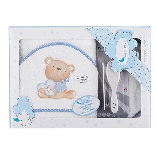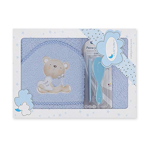 Amazon - Badkappa med huva, kärlek blå - 100% bomull - och hårborste och kam set