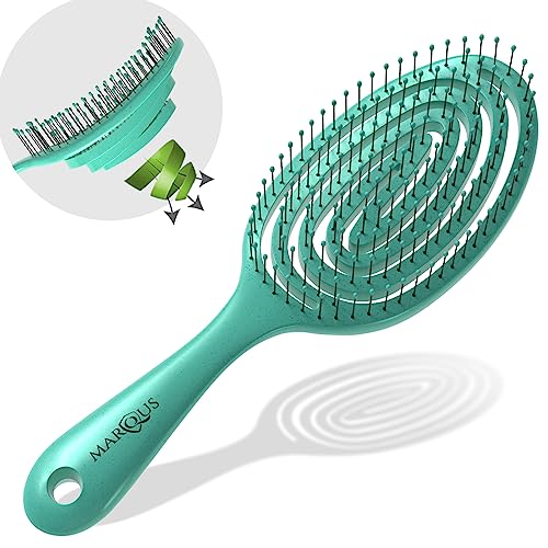 marQus ekologisk hårborste utan drag med unik dubbel spiralfjäder och ännu fler borststrån för optimal tryckfördelning och skötsel, frigöringsborste för alla hårtyper, 1 st, färg aqua blue