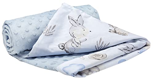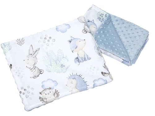 Medi Partners krypfilt 100% bomull 75 x 100 cm dubbelsidig multifunktionell minky gosig filt för barnvagnar, mjuk fluffig (hisch och igelkott med ljusblå minky)