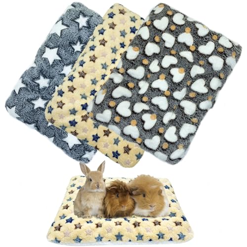 XMPEKO 3-pack smådjur plyschsäng – 40 x 30 x 3 cm, varm mjuk fleece marsvin bäddmatta för burtillbehör för kanin kanin chinchilla ekorre igelkott hamster