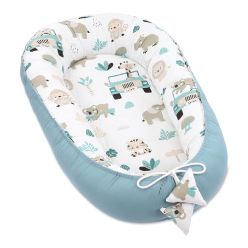 Babynest babynest för nyfödda med bärhandtag 90 x 50 cm babynest bärbart bo för säng barn mysnest kokong för pojkar och flickor Igelkott Afrika blå