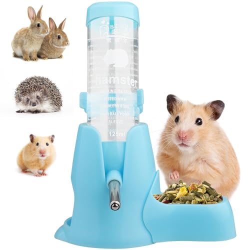 Diyife Hamster Drickflaska, [125 ML] Vattenflaska för Husdjur, Inget Vattenläckage, Automatisk Vattendricksdispenser Matskål Golvgrotta 3-i-1 för Kaniner, Chinchilla, Igelkott, Ekorre – Blå