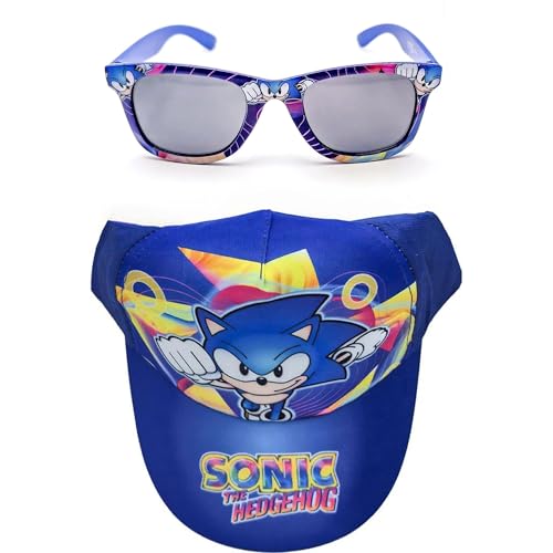 Officiellt Sonic-set med mössa och solglasögon för barn med blå igelkott design – Sonic-tillbehör för keps och solglasögon för barn med UV-skydd och äventyrlig sommarstil, En storlek, one size