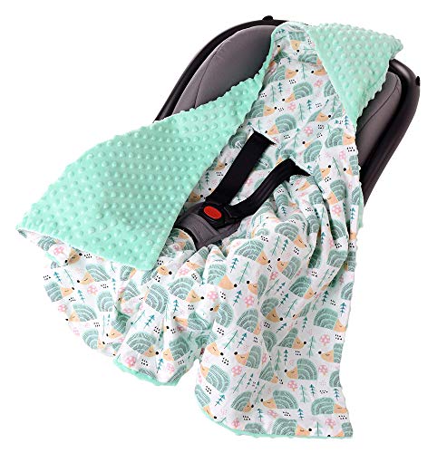 Medi Partners Slagtäcke 100% bomull 85 x 85 cm gosig filt för barnvagn, babystol, universell babyfilt, dubbelsidig babyfilt, buggy bilstol (mynta igelkott med mynta minky)