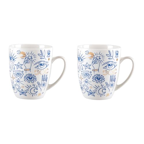 GENEVIEVE LETHU 540696 Set med 2 muggar med 35 cl porslin - MATAKI kollektion färg vit-blå-guld - kaffekopp, te, örtte i låda