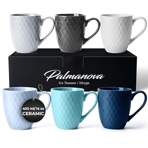 MIAMIO – 6 x 400 ml – set med kaffekoppar – modern och matt keramisk mugg – stor kaffekopp – Palmanova-kollektionen (blå)