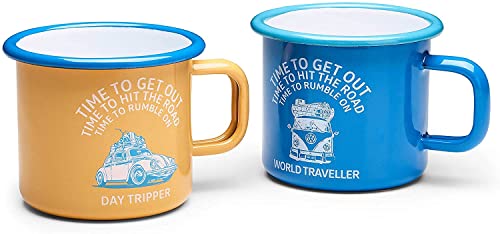 Volkswagen 7E9069601 emalj mugg VW T1 Bulli skalbagge kaffekopp tekopp, 2 stycken, blå/gul