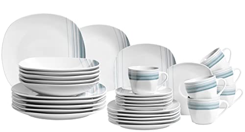 MÄSER 931211 Serie Enni, kombiservis 30 delar, vitt porslin porslinsset med blått mönster, tallrik, kaffekopp, desserttallrik för 6 personer, porslin, vit/blå
