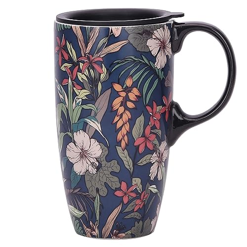 Keramisk mugg stor kaffekopp höga muggar porslin latte tekopp med lock 17 oz, blå