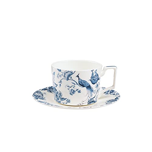 fanquare 250 ml benporslin tekopp och tefat set för 1, blå och vit kaffekopp med tallrikset, brittiska blommor porslin tekopp för kvinnor