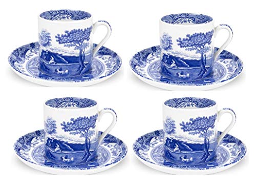 London Boutique Kaffekopp och fat, set med 4 stycken, porslin, fågel, fjäril, flora och blomma, blå