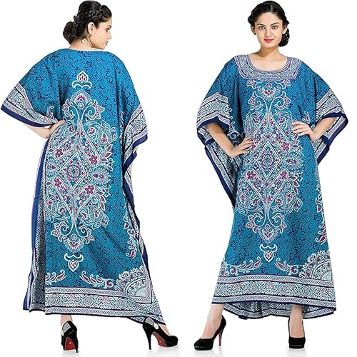 Överdimensionerad kaftan klänning tunika lång maxi kimono kaftan klänning nattlinne strand fest casual klänning, blå, One Size Stor