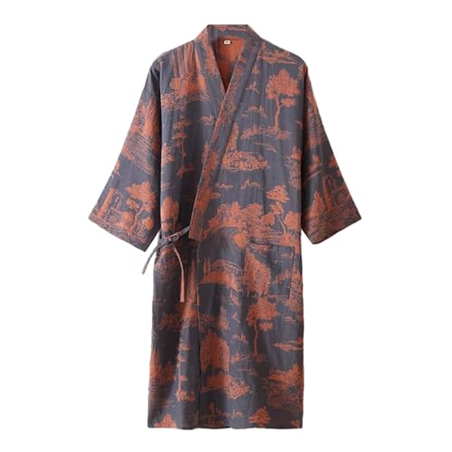 Generic Badrockar för män Kimono Robe Khan Pyjamas Unisex Cotton Spa Badrock Sömnkläder,Blue gray,XL