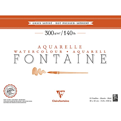 Clairefontaine 96351C 1 sida fontän limmat block - 12 ark vitt akvarellpapper 100% professionell kvalitet satin bomull korn 30 x 40 cm 300 g