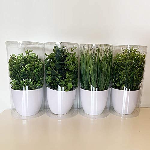 Pack 12 konstgjorda 23 cm blandade växter med kruka