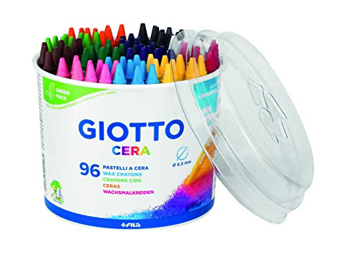 GIOTTO Cera vaxkritor för barn, kruka med 96 blandade färger, supertvättbar, perfekt för hem och skolor