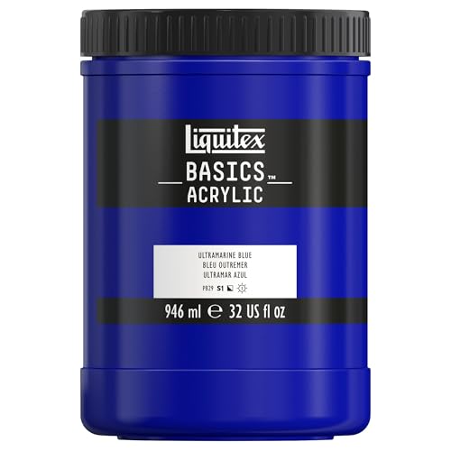 Liquitex 8870356 basics – akrylfärg, monopigmenterade konstnärspigmenteringar, ljusäkta, medelviskositet, arkivkvalitet, sidenglänsande finish, 946 ml kruka – ultramarinblå