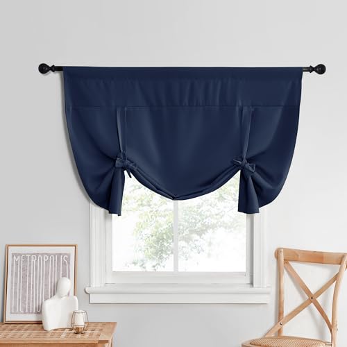 NICETOWN Mörkläggningsgardin termiskt isolerat badrumsdraperi, lantlig romersk nyans för små fönster, stång ficka fönstergardiner, 132 cm B x 114 cm L Set med 1, marinblå