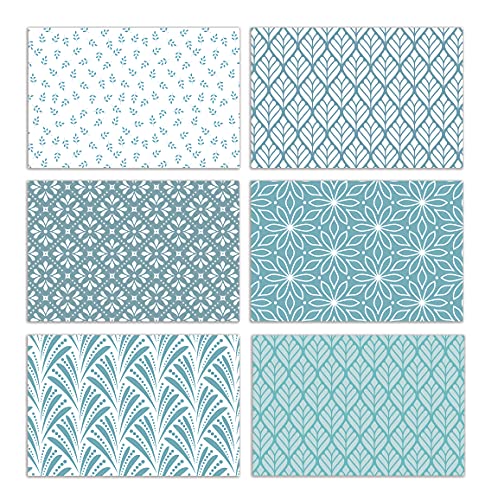 Bättre kontorsprodukter 100-pack gratulationskort för alla tillfällen, blandade tomma anteckningskort, 10 x 15 cm, 6 blå nyans blommönster, tom inuti, med kuvert, 100-pack