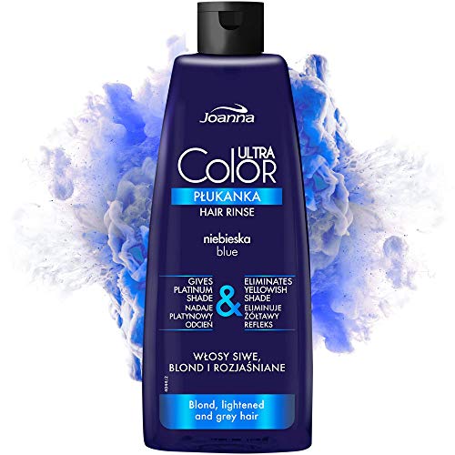 Joanna Ultra Color – Blå färgbalsam för blont och ljust hår – platina-grå nyans – hårvård – eliminerar gula nyanser i grå-blont hår – tvättar sig själv – 150 ml