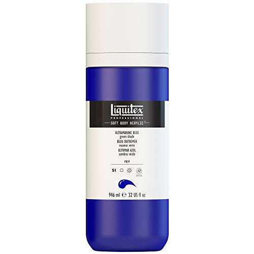 Liquitex 1946380 professionell akrylfärg Soft Body – konstnärsfärg i krämig täckande konsistens, hög pigmentering, ljusäkta och åldringsbeständig, 946 ml flaska – ultramarinblå (grön nyans)