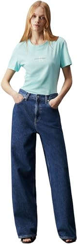 Calvin Klein jeans dam monolog slim t-shirt S/S stickade toppar, Blå nyans, XXS