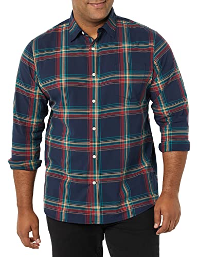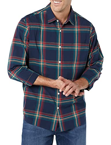 Amazon Essentials långärmad långärmad stretchpoplin-tröja för män, marinblå röd blågrön blå pläd, X-Large
