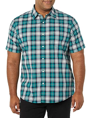 Amazon Essentials kortärmad stretch poplin skjorta för män (finns i stora och långa), blågrön blå vit pläd, Large