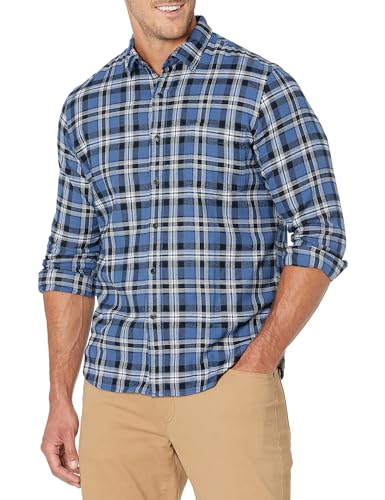 Amazon Essentials Men's Långärmad flanellskjorta (finns i Big & Tall), Svart blå buffel pläd, XXL