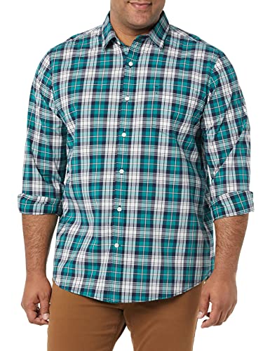 Amazon Essentials långärmad långärmad stretchpoplin-tröja för män, blågrön blå vit pläd, X-Large